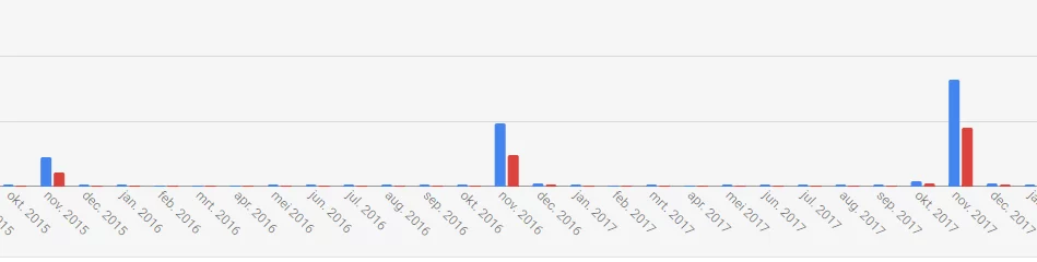 Verschillende webshops doen mee aan Black Friday en dit aantal groeit jaarlijks. De bezoekers verwachten op deze dag hoge kortingen. Dit is ook terug te zien aan de zoektermen die rond midden/eind november gebruikt worden in combinatie met ‘Black Friday’.