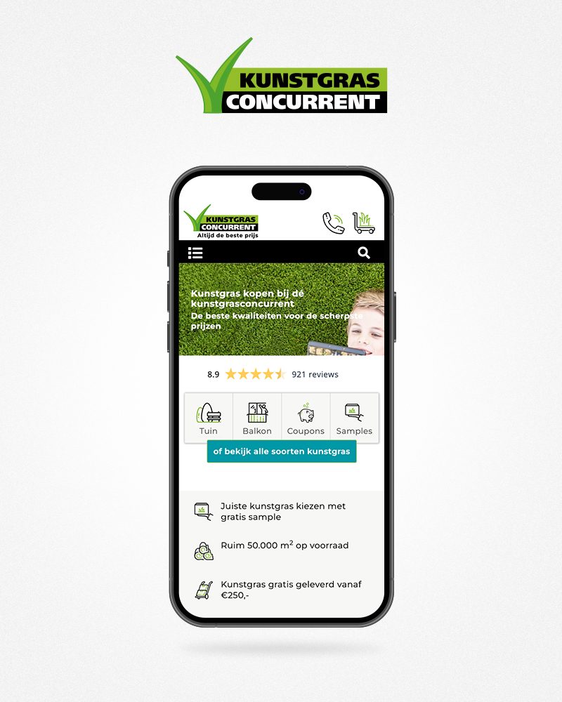 Kunstgrasconcurrent is de webshop waar je hoogwaardig kunstgras tegen een scherpe prijs kunt kopen. Om het aantal bestellingen te verhogen, zochten zij een partner voor hun online marketing. Het was essentieel voor de samenwerking dat we de markt begrepen en flexibel waren in onze dienstverlening, aangezien weersomstandigheden een grote invloed hebben op de online resultaten. Hierdoor werd de samenwerking uitgebreid in de aanloop naar en tijdens het hoogseizoen, vooral op momenten dat de temperaturen opliepen. Wij zijn trots dat wij al sinds 2012 samen met Kunstgrasconcurrent mogen werken.