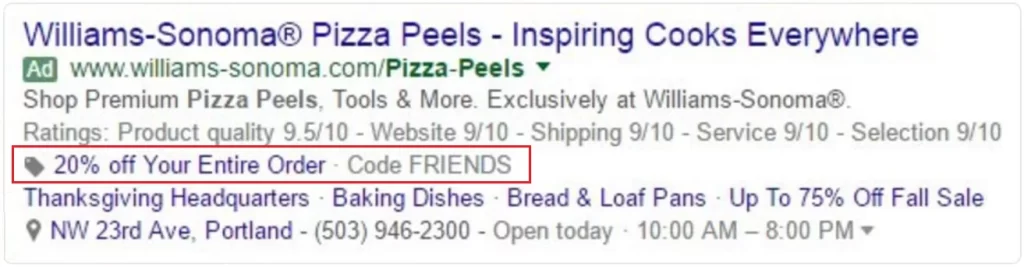 De nieuwe interface van Google Adwords biedt ook een aantal nieuwe mogelijkheden. Zo kun je met de promotie-extensie de aanbiedingen van jouw website extra promoten. Met deze functie wordt de promotie prijs onder de advertentie vertoond. Dit bespaart je karakters in de advertentieteksten!