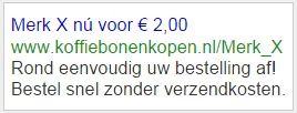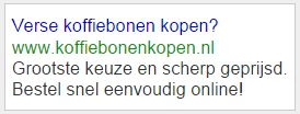 Stel; onderstaande advertentie is van u en u heeft een webshop welke uiteraard koffiebonen verkoopt. De oriënterende bezoeker is op zoek naar koffiebonen en bevind zich in het overzicht van uw assortiment koffiebonen.
