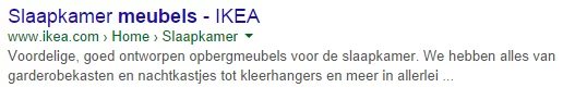 Hoe aantrekkelijker de meta description is, hoe groter de kans dat een klant op uw link klikt. Het is dan ook belangrijk om aandacht te besteden aan de meta description. Indien u nalaat een description te schrijven, dan zal Google een willekeurige tekst van uw site halen. In de meeste gevallen is deze tekst langer dan 155 tekens en dan wordt deze afgebroken. Het resultaat is een rommelige en onprofessionele uitstraling: